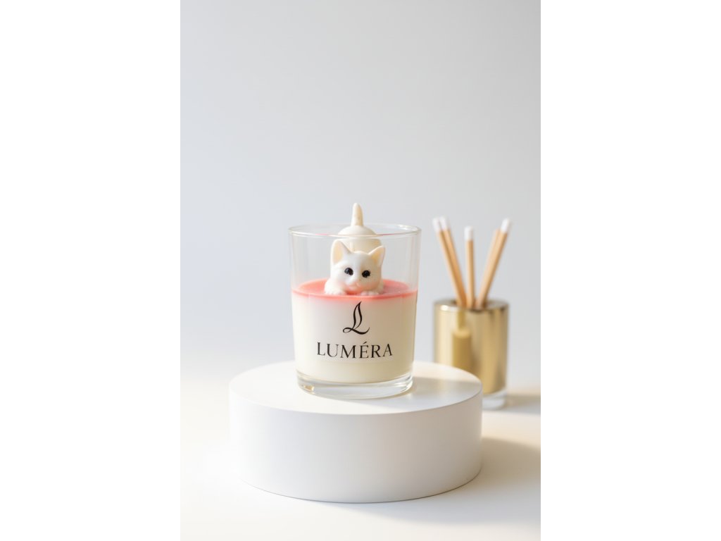 Zamilujte si něžnou atmosféru, kterou přináší svíčka Sweet Kitty. Krémově bílý vosk doplněný jemnou růžovou vrstvou vytváří harmonický a hravý vzhled, zatímco roztomilé voskové koťátko vykukující z horní části svíčky dodává celku jedinečné kouzlo.