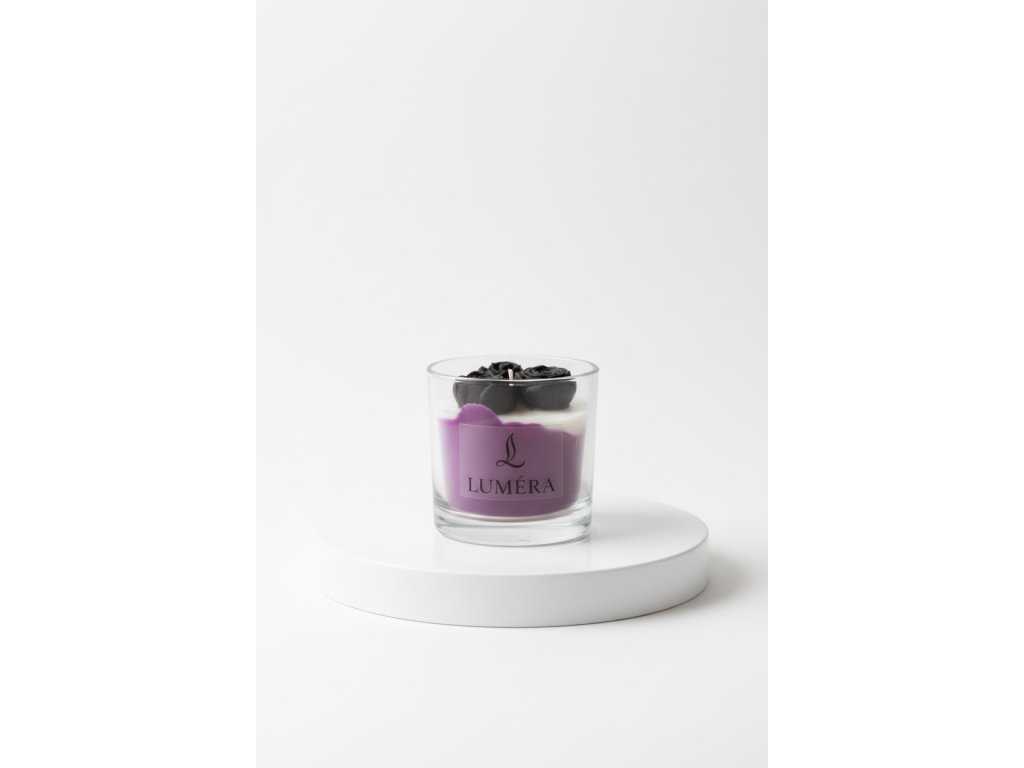 Svíčka zdobená třemi voskovými kytičkami přináší pocit klidu, jemnosti a luxusu.
